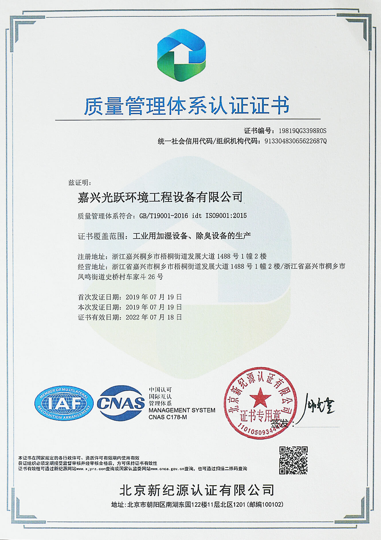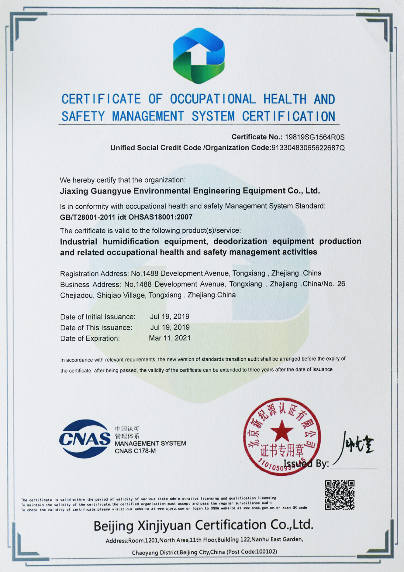 通過了ISO9001、ISO14001、OHSAS18001、AAA和CE等管理體系的認(rèn)證